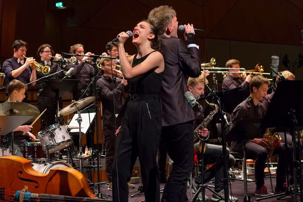 Bei der 16. Bundesbegegnung „Jugend Jazzt“ in Frankfurt am Main hat die United Big Band, die sich aus Schüler*innen des Goethe-Gymnasiums und des Arndt-Gymnasiums zusammensetzt, unter der Leitung von Dr. Martin Burggaller und Martin Krümmlung den Jazzpreis des Deutschen Musikrats gewonnen. Mit der Auszeichnung ist eine zweitägige CD-Produktion in den Hansahaus-Studios in Bonn verbunden. Herzlichen Glückwunsch zu diesem tollen Erfolg!