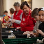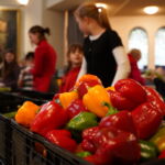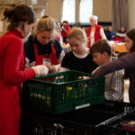 Um 12.30 Uhr wurden die Türen für die Ausgabe geöffnet und viele Menschen kamen. Eine Stunde lang haben die Kinder an der Seite der ehrenamtlichen Mitarbeiter*innen Essen ausgegeben und dabei für sie neue Erfahrungen gemacht.