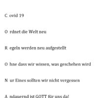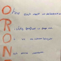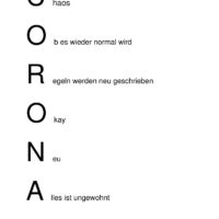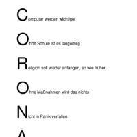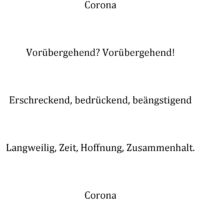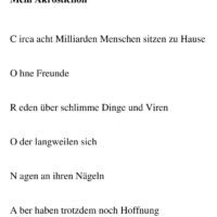 Mit Elfchen, Akrosticha und Sinngedichten haben Schüler*innen des Evangelischen Religionsunterrichts in der Zeit des Lockdowns auf freiwilliger Basis ihre Gedanken und Gefühle kreativ ausgedrückt.