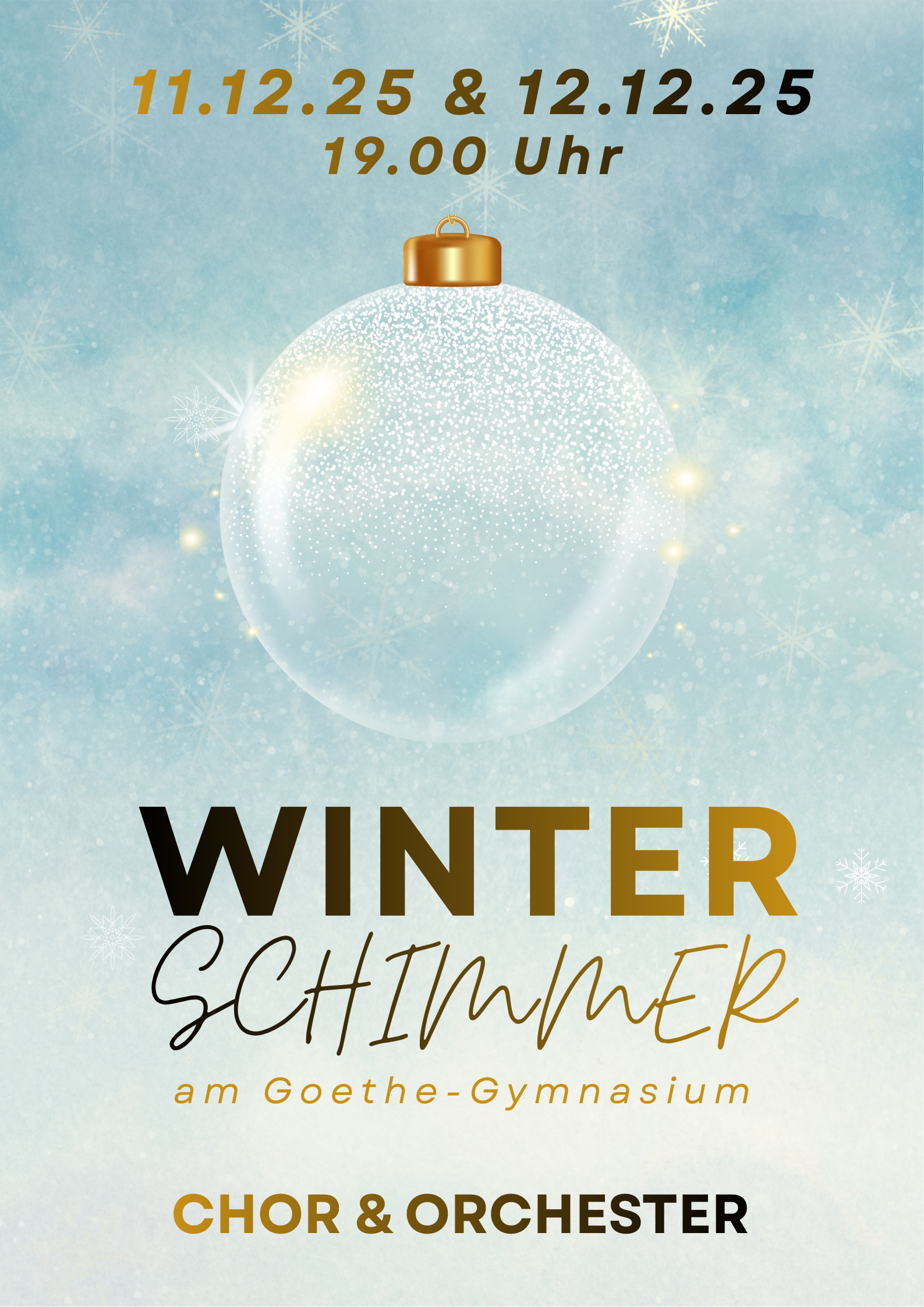 Das Konzert findet am 11. und 12. Dezember 2025 jeweils 19:00 Uhr in der Aula des Goethe-Gymnasiums statt.