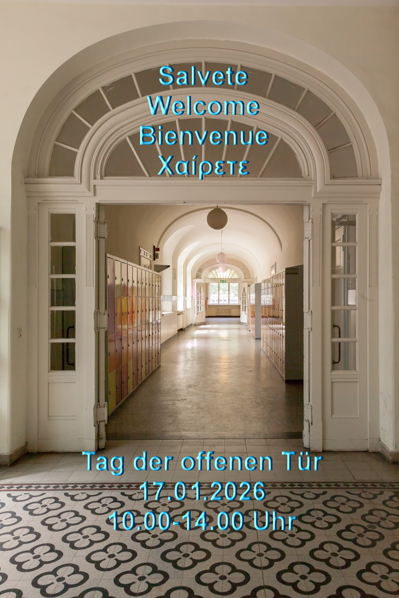 Am Samstag, d. 17.01.2026, öffnen wir vom 10.00 bis 14.00 Uhr wieder unsere Pforten und laden euch und Sie herzlich dazu ein, am Tag der Offenen Tür die Menschen und Räumlichkeiten des Goethe-Gymnasiums kennenzulernen.