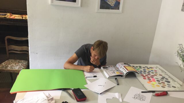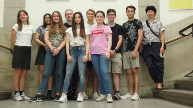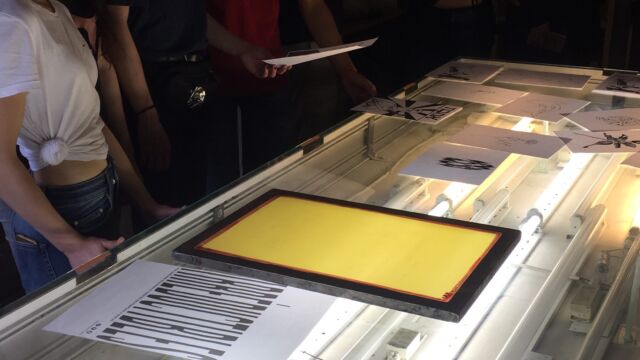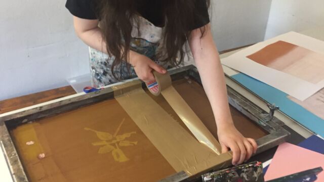 Wir haben mit einer Gruppe von Schüler*innen einen Siebdruckworkshop in der SDW in Neukölln gemacht. Dabei haben die Schülerinnen ihre Motive ausgehend von Goethes „Die schöne Nacht“ selber entwickelt, die Siebe belichtet und die Motive anschließend auf Papier und auch Textilien gedruckt. Die Arbeiten wurden im Foyer des Schulgebäudes ausgestellt.